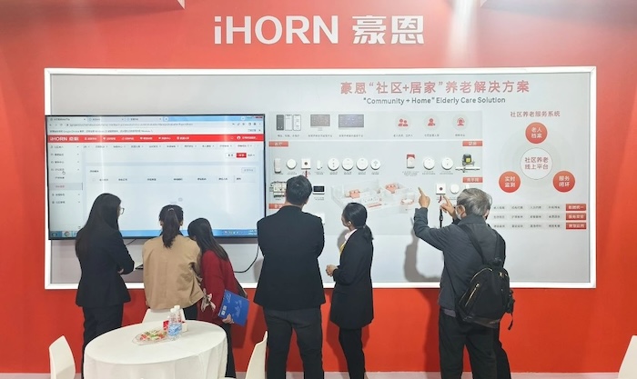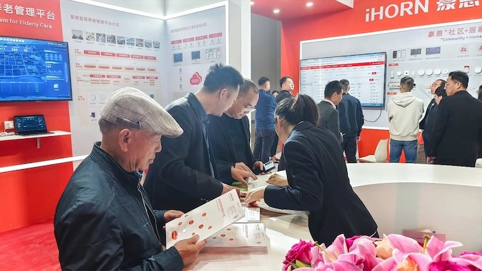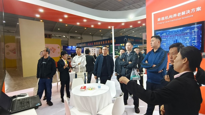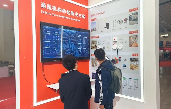 At the exhibition site, Hao En showed the community + home, institutional pension solutions, with the smart pension comprehensive management platform as the core, unified management of various front-end intelligent pension equipment, with technological means to help the elderly secure life, happy pension.