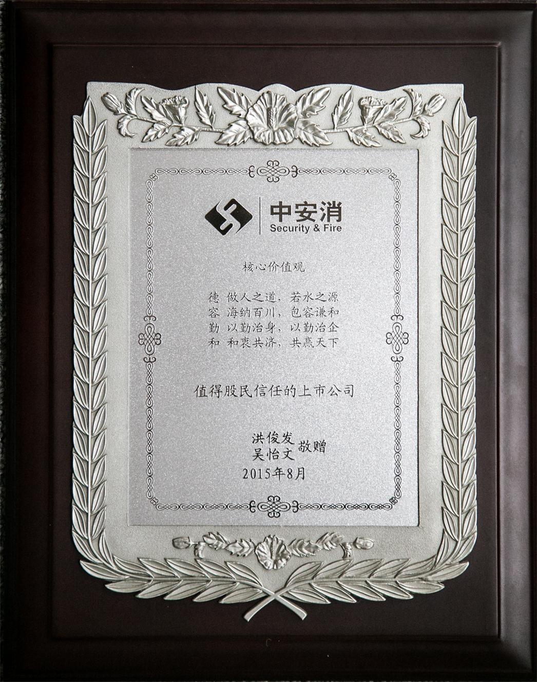 Figure 3, “Trustworthy Listed Company” medal presented by shareholder representative.