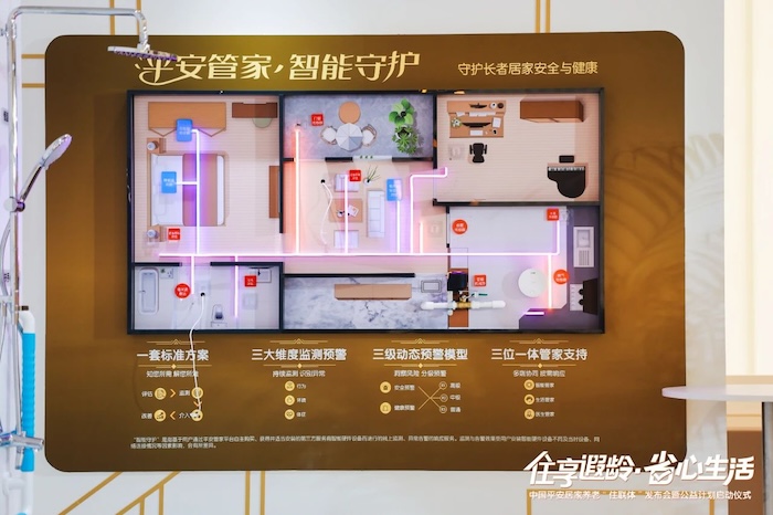 "Housing consortium" can be summarized as a set of home safety service system for the elderly, including a professional group standard, a set of convenient evaluation system, a high-quality service alliance, and an intelligent service ecology, aiming to help meet the home safety needs of the elderly and achieve "less risk, less worry for children". "5" refers to the rapid detection of the elderly through five-minute independent evaluation; "7" is the integration of alliance resources to provide seven space intelligence for aging transformation, and "3" is to realize the whole service process and all-weather risk monitoring through the trinity of steward.