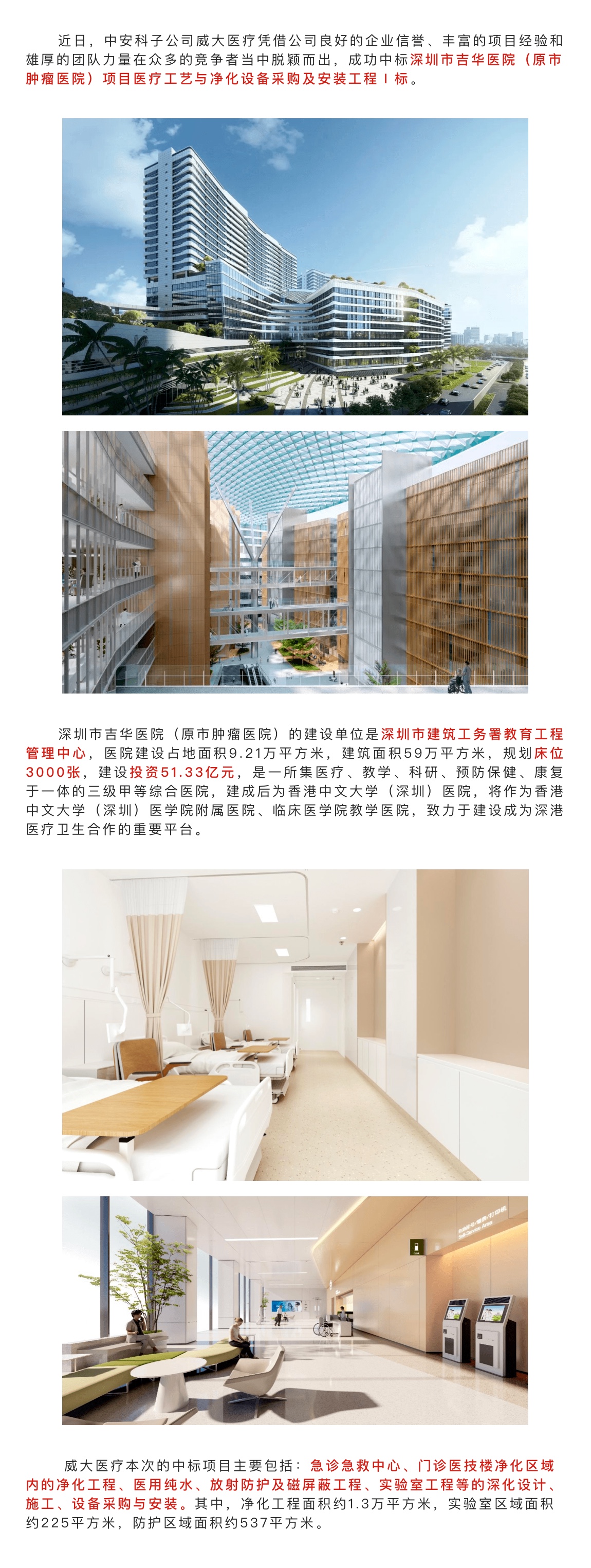 中標喜報|中安科子公司威大醫(yī)療成功中標深圳市吉華醫(yī)院項目