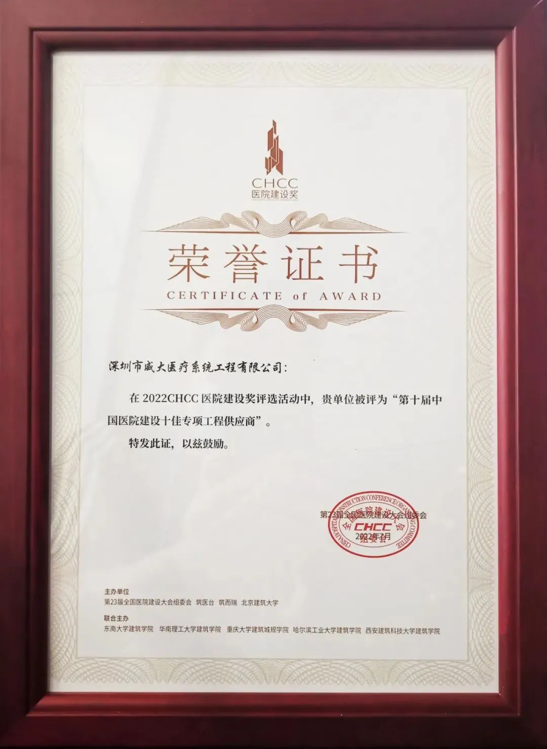 7月22日,2022CHCC醫(yī)院建設(shè)獎頒獎典禮在武漢國際博覽中心隆重舉行。CHCC醫(yī)院建設(shè)獎是由國內(nèi)行業(yè)媒體平臺和知名高校共同發(fā)起、組織的全國醫(yī)院建設(shè)領(lǐng)域最具影響力、最重要獎項之一。