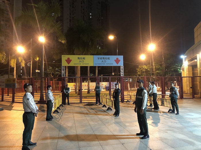 中安科子公司Guardforce澳門衛(wèi)安保安人員秉承著以客為先的安保服務(wù)精神于凌晨三點到達活動場地準(zhǔn)時報道,展示了衛(wèi)安團隊對確保活動安全與成功的堅定承諾和專業(yè)態(tài)度。